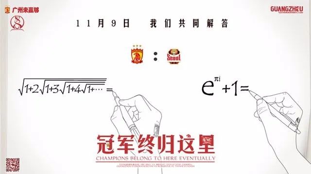 2013年11月4日,广州恒大和首尔FC亚冠决赛的5天前,恒大俱乐部祭出了一副名震全亚洲的宣传海报:用数学恒等式表达比分诉求。代表恒大的一方为左侧的拉马努金恒等式,代表首尔的一方为右侧的欧拉恒等式,寓意为广州恒大将以3:0战胜首尔FC。