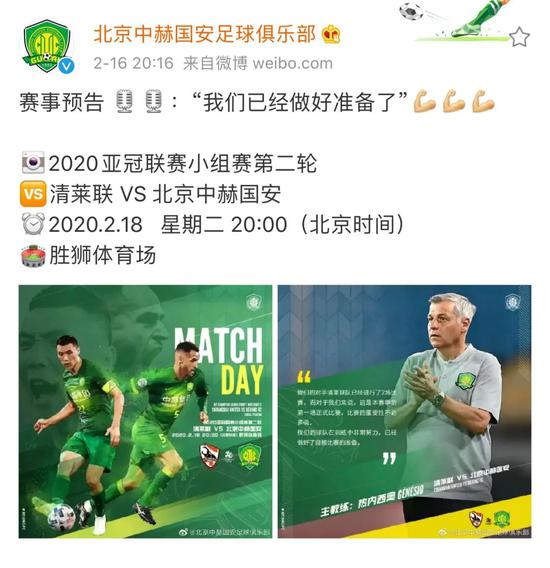 一周前,北京中赫国安客场击败泰国清莱联的亚冠第二轮比赛,在缺乏体育赛事可观看的当下吸引了全国观众的目光。除了赛事本身的重要性和结果的喜人,同时引发大家注目的,还有国安俱乐部赛前海报的变化。