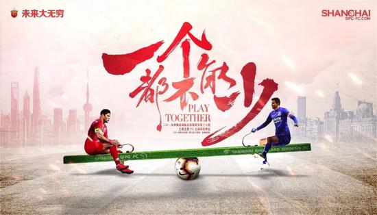 次回合上港又用“一个都不能少”、且“都”字嵌入阿拉伯数字“3”,寓意3分到手,同时也表达了两件时事:对彼时正被恒大和有关部门挖角归化的埃尔克森的挽留,也表达了对深陷降级区的对手申花的祝福。