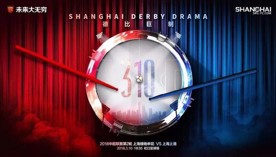 这样的“内涵型海报”在中超近几年屡见不鲜,上海德比最具影响力的一次海报冲击,当属2018赛季红蓝双方均在“310”数字上做起文章。