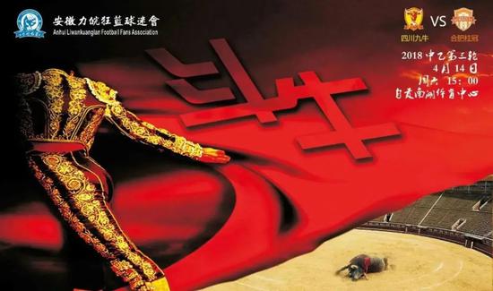 这又致使即将前往自贡远征的安徽力皖狂蓝球迷协会,制作了一副“斗牛”的回击海报,并与其他同样会前往自贡的安徽球迷组织掀起了一波又一波网络声浪。